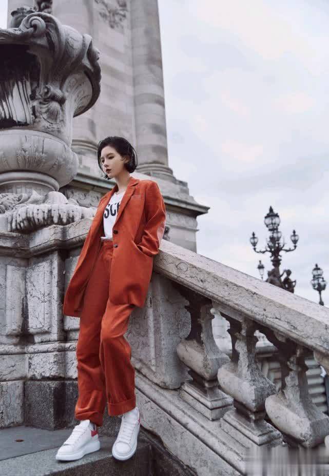 而这一次她的穿搭比较帅气,穿着一套橘红色的西装,看着很酷很有型,短发的发型也比较撩人,展现出她帅气的一面。
